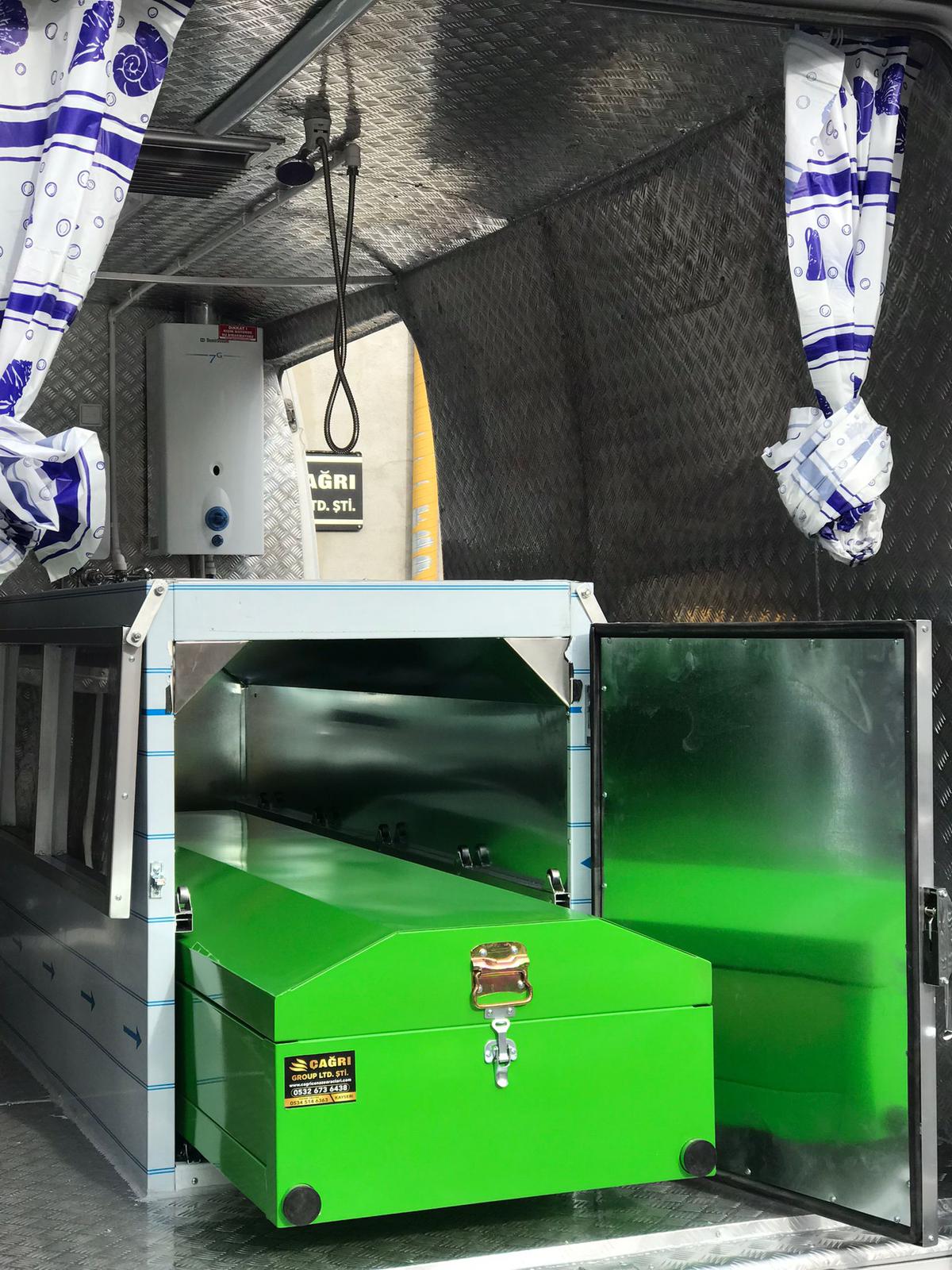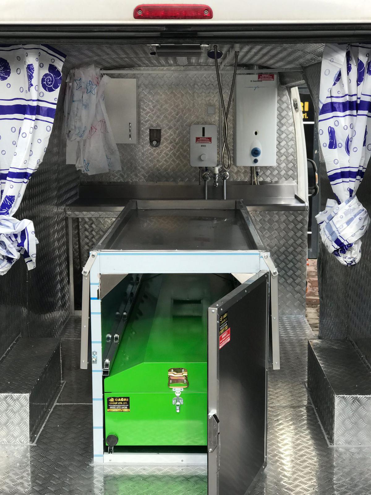 Cenaze yıkama ve cenaze nakil araçları, panelvan araç içi veya kamyon -kamyonet üzerlerine yapılan kabin içinde, morglu, morgsuz, elektrikli ve LPG’li olmak üzere çift şofbenli, temiz-atık su depolu gerekli su ve elektrik tesisatlı olarak yapılmaktadır. Cenaze aracındaki morg hem hareket halinde soğutmalı (12 V – 24 V)hem de motor stop halindeyken soğutma özelliği olabilmektedir.